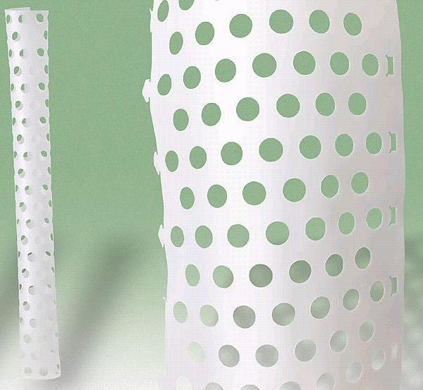 Individuální perforovaná plastová chránička kruhového průřezu určená k ochraně listnáčů a ovocných stromů proti okusu a ohryzu zvěří,