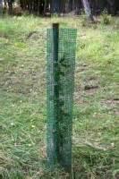 Kruhový plastový chránič listnatých dřevin s optimální světelnou propustností pro dosažení přímé formy kmene, instalace ke kůlu.