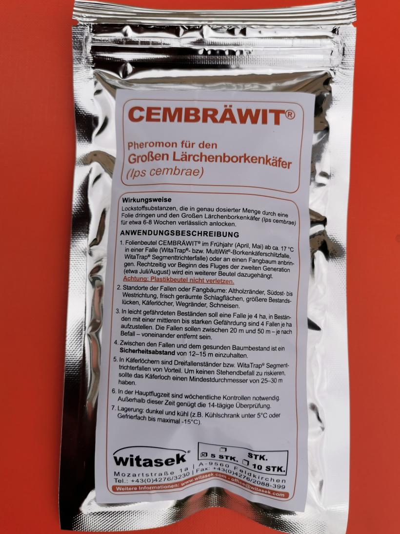 Cembräwit je feromon určený k lákání lýkožrouta modřínového.